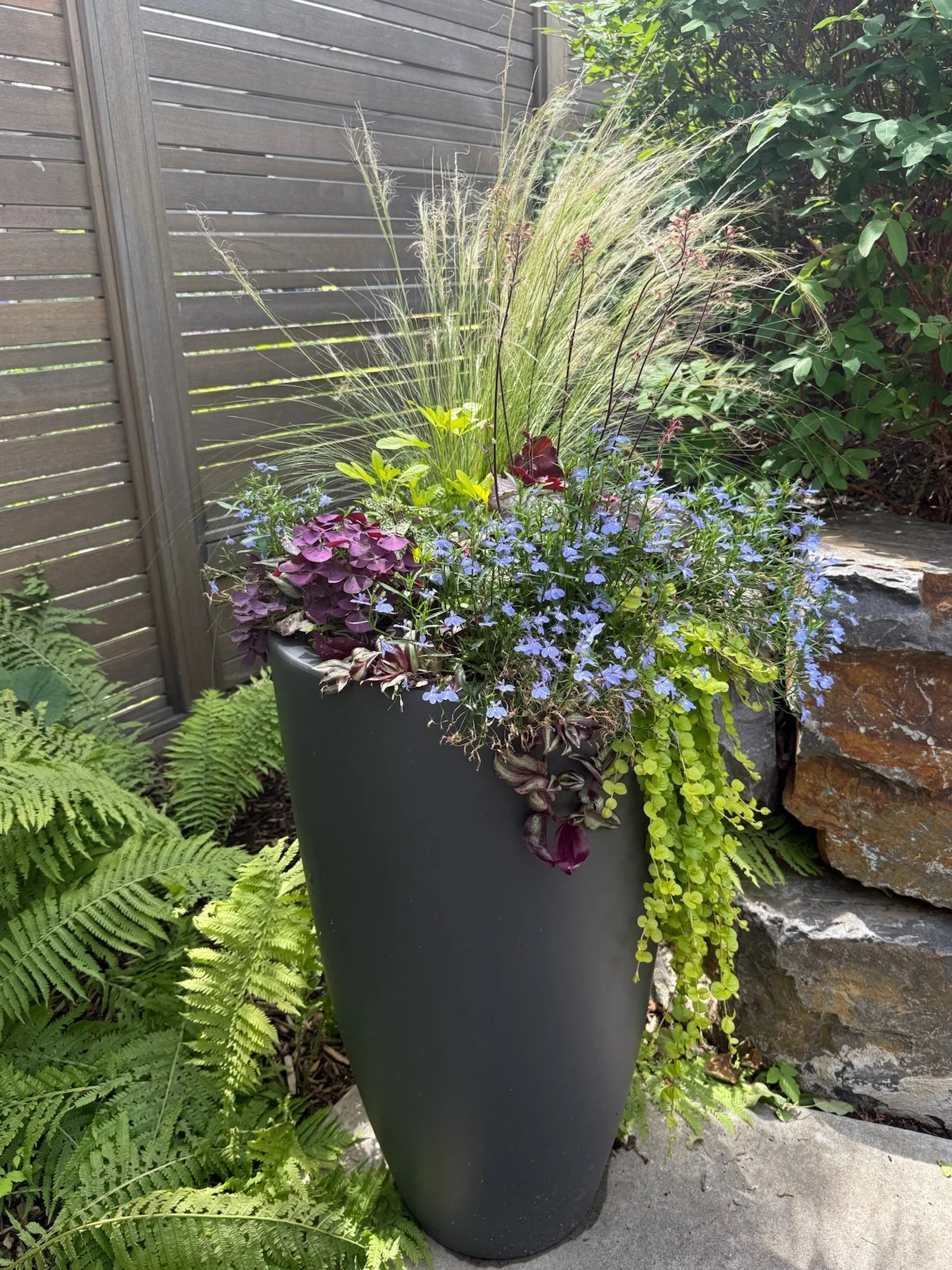 Think bold tropicals. Soft trailing blooms. Structured greenery or wild texture. Whether you love symmetry, a pop of color, or a gentle mix of pollinator-friendly plants, we’ll design with your preferences in mind.